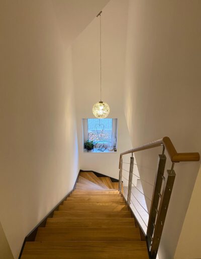 Das Ergebnis? Eine offene, lichtdurchlässige Treppenkonstruktion, die den Raum optisch erweitert und jedem Flur einen Hauch von zeitgenössischer Eleganz verleiht.
